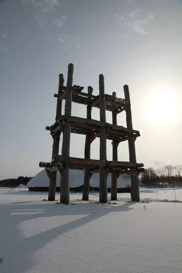 青森県 三内丸山遺跡「掘立柱建物跡」 / Sannai Maruyama Iseki (site) From six pillar holes, researchers reconstructed above photo’s structure. Each holes are about 2 meters in diameter. “Six pillars are thought to have supported a huge rectangular raised-floor building.” Sannai Maruyama Iseki is located in Aomori Prefecture. It is a site from Jomon period. Its period is about 4,000 – 5,500 years ago. |