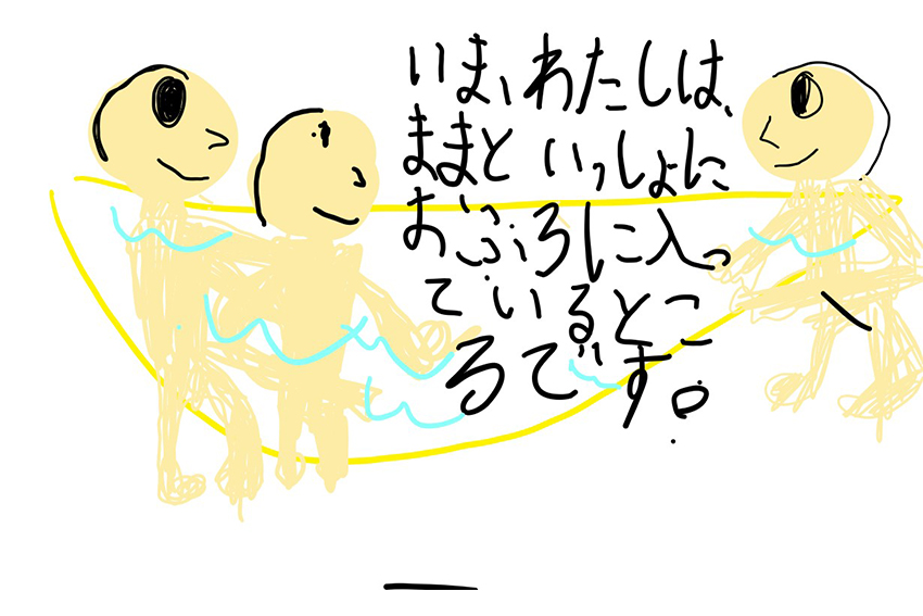 【表紙の写真: いま、わたしはままといっしょにおふろにはいっているところです】