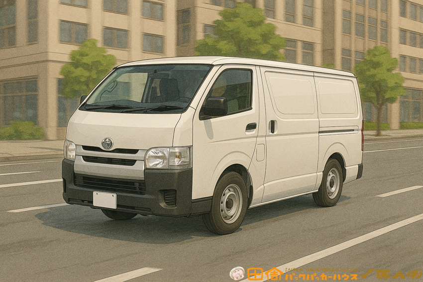 今回、ハイエース“動く拠点”の電装系統をゼックに預けて修復してもらうことに。代車として貸してもらったのは、標準のバンタイプのハイエース。