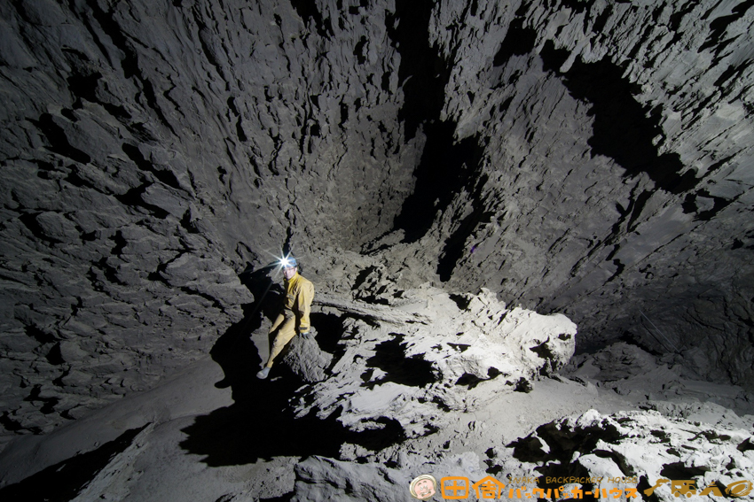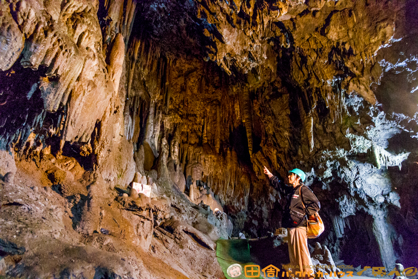 【岩手県・氷渡洞。広大な地底世界にただただ驚かされる。“つらら石”が見どころの安家洞とあわせて、この地域の鍾乳洞はまさに地底ワンダーランド。未踏の世界を探りながら地域の魅力を発信し続ける「地底人」こと、安家石灰岩地底ガイドの大崎善成さん】