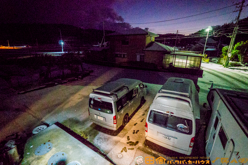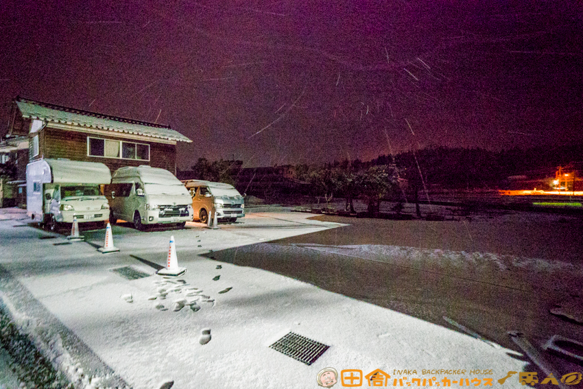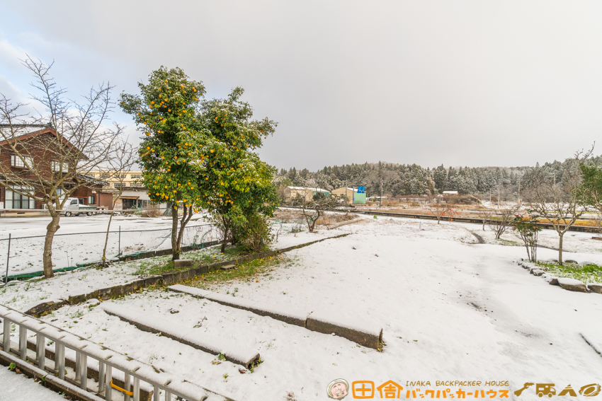 昨晩から今朝にかけて、石川県・穴水町川尻にある「田舎バックパッカーハウス」周辺では、今季初の雪。
