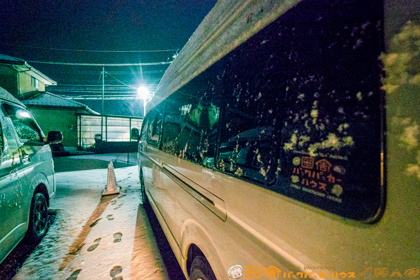 田舎バックパッカーハウスのあたりは、今日これ以上雪が降らなければ、日中の気温で半日程度でサッと溶ける程度の雪だと思う。