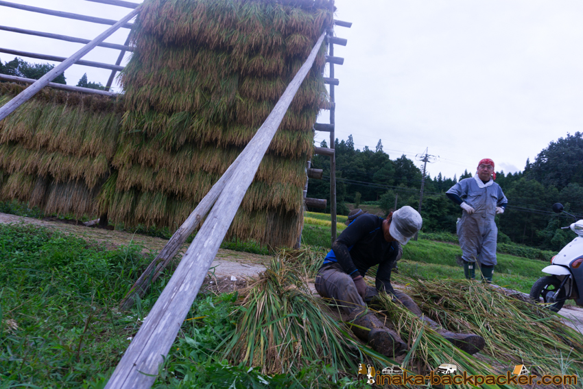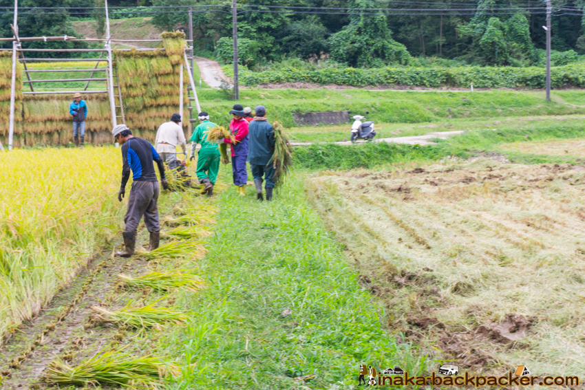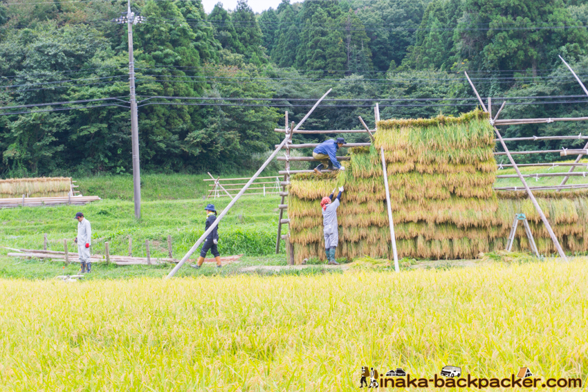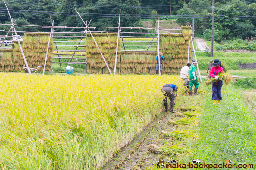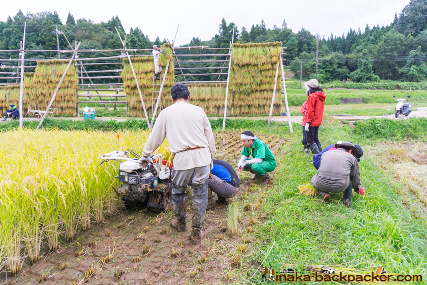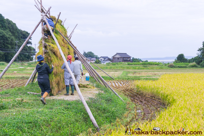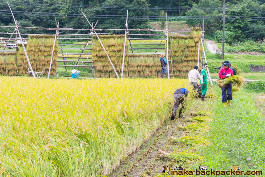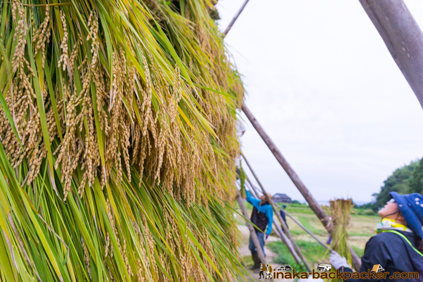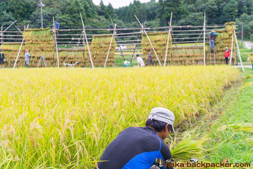 写真で見るNPO法人「田舎時間」の活動 <2017年5月:田植え><2017年9月: 稲刈り・稲架干し作業> |
