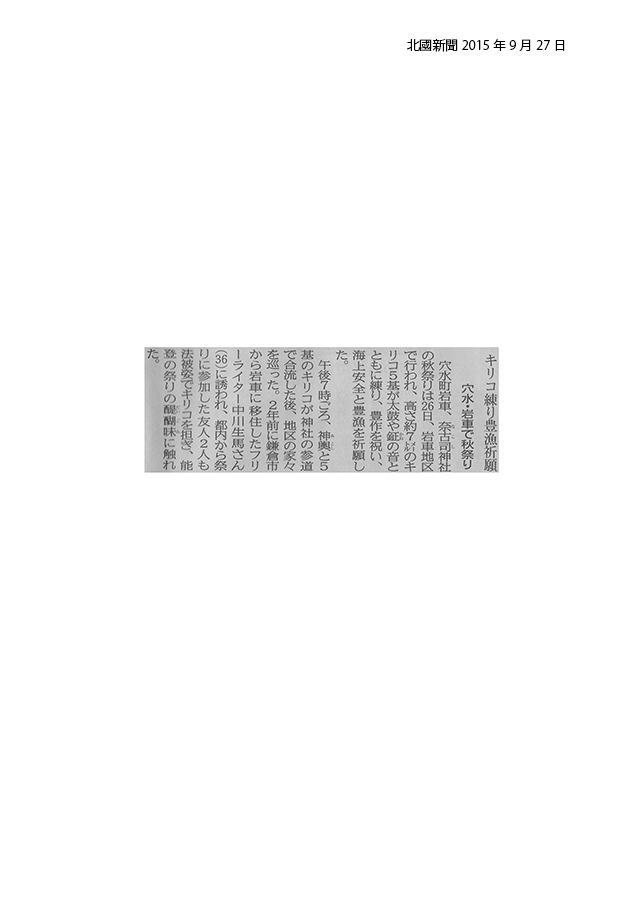 ▽文化放送「大人ファンクラブ」の取材 AM1134 文化放送「大人ファンクラブ」のコーナー「田舎暮らしエクスプレス」に登場。 「バックパッカー旅を経てどうして能登へ?」「田舎暮らしってやっていけるもんなの?」などの内容を話した。収録は約5分であっという間。音声のアーカイブはないが文化放送のホームページ(2015年4月20日)に紹介記事が載っている。 |
